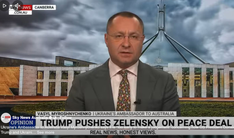 Ambassador Vasyl Myroshnychenko being interviewed about ‘appeasement deal’ – 7:30, ABC TV, 27 November 2025