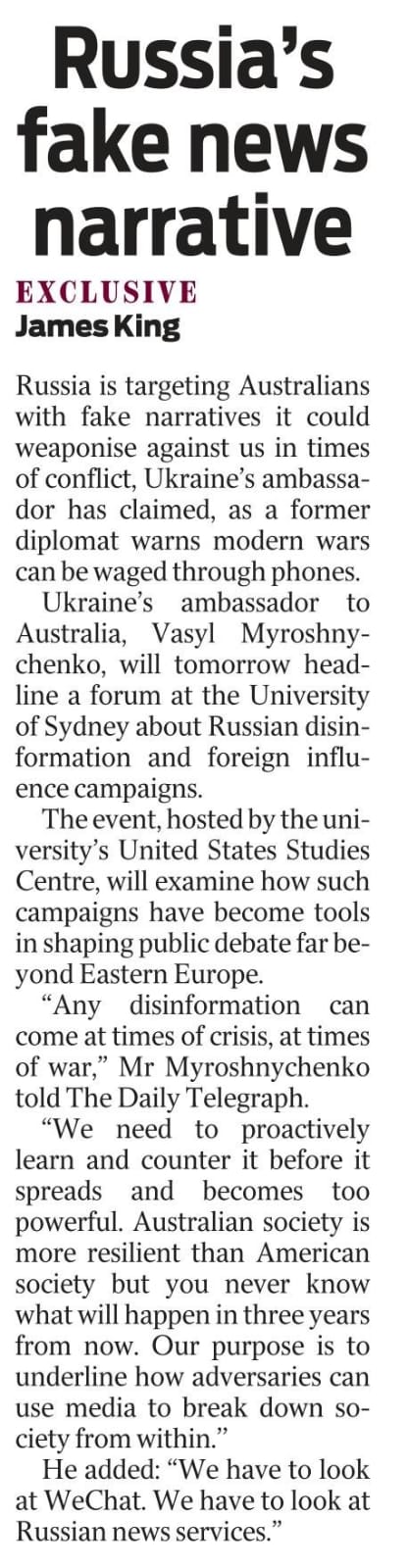 Ukrainian Ambassador to Australia meets with treasury officials to discuss tax treaty, The Australian, 13 September 2023